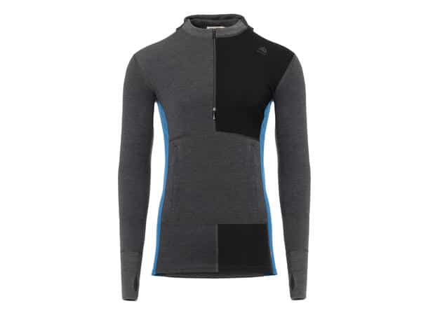 Aclima WarmWool hættetrøje med lynlås i halsen er en af Aclimas mest populære beklædningsgenstande. Med tretrinsfunktionen kan du vælge mellem rund hals, høj krave eller elefanthue – alt sammen i én trøje. Over næse og mund har elefanthuen WoolNet. Pasformen er tæt, og trøjen fungerer derfor perfekt tættest på kroppen på kolde dage. Ribside for komfort og bevægelighed. Tommelfingerhuller til varme håndled. Hænderne kan varmes i en lomme på maven udstyret med lynlås.