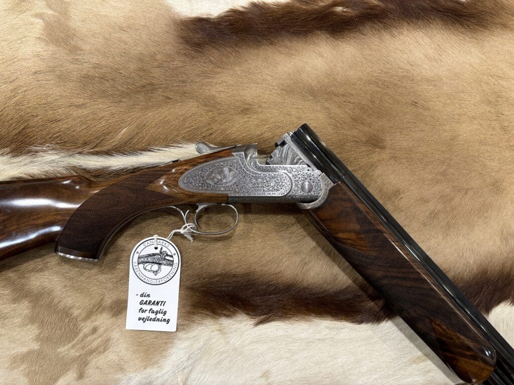 Fede jagtgraveringer og flot skæftetræ.