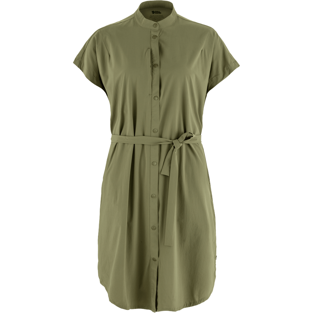 Abisko Fjäll Dress til kvinder er en let og luftig skjortekjole lavet af køligt, hurtigttørrende stretchpolyamid. Den afslappede pasform med buet søm og aftageligt bælte passer til en bred vifte af kropsformer og er behagelig og alsidig. Den er lavet af hurtigtørrende stretchstof, der er 90 % genanvendt.