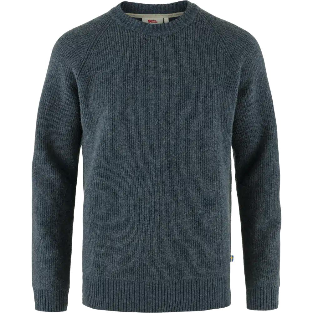 En klassisk sweater med rund hals lavet af sporbar uld. Strikket i en halvcardigansøm for god isolering og raglanærmer for komfort og bevægelsesfrihed. Trøjen har ribbet halsudskæring, manchetter og forneden. Læder ræv logo på ærmet. En fantastisk tidløs beklædningsgenstand, der er perfekt at have på året rundt til hverdagsaktiviteter.