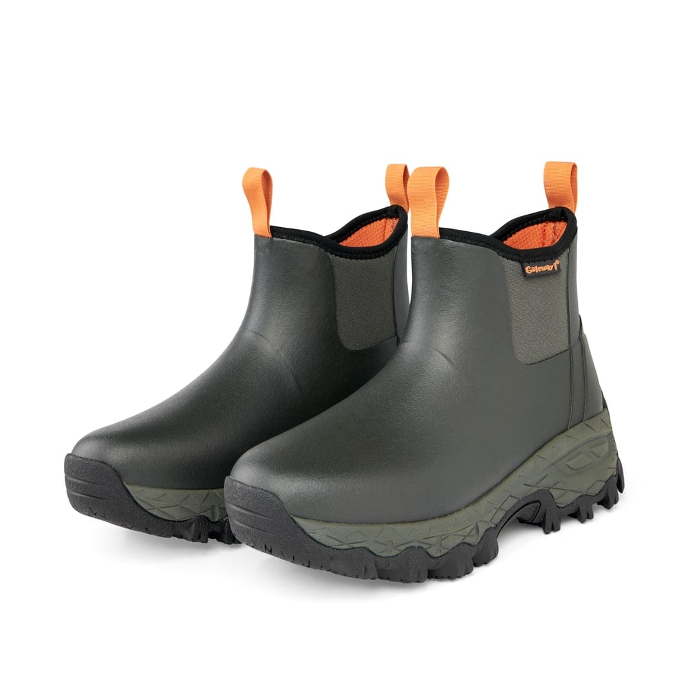 Støvlen er fremstillet i fleksibelt naturgummi, som sikrer høj slidstyrke og lang levetid. Det 4 mm neoprenfor giver effektiv isolering, så dine fødder holdes varme og komfortable på kølige dage, samtidig med at materialet bevarer sin fleksibilitet.