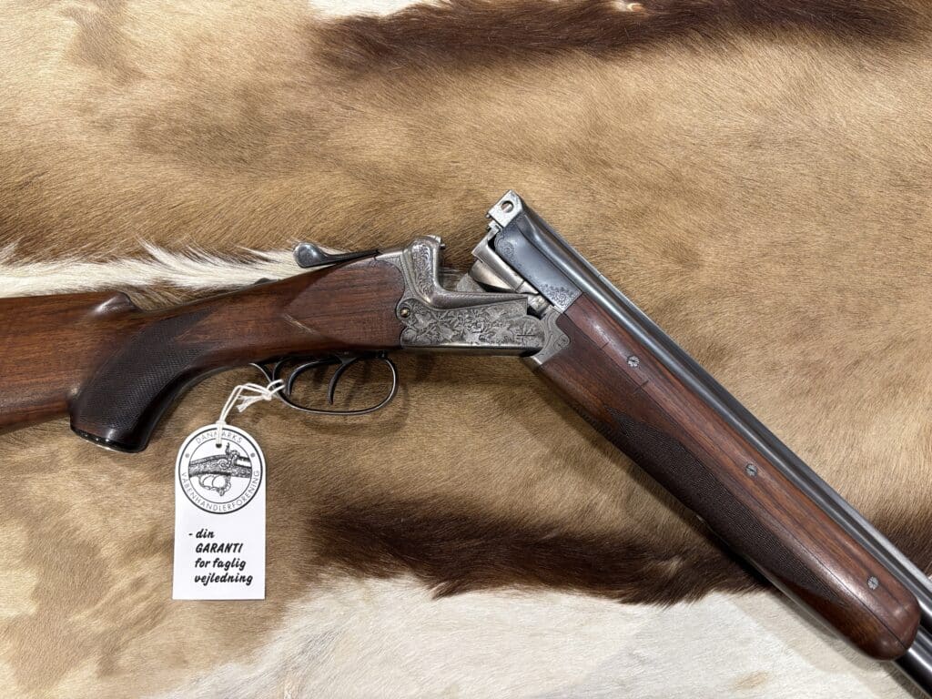 Brugt Gebrüder Merkel 201E – 12/70 med ejektor og fast boring og dobbelt aftrækker.