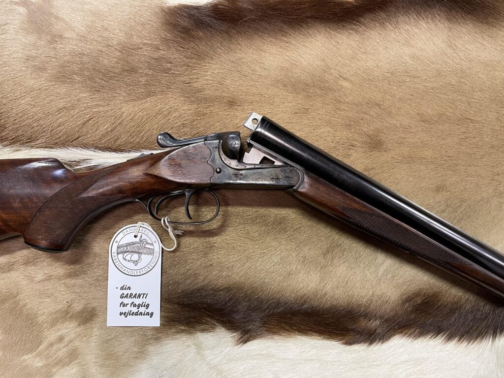 Gebrüder Merkel kal. 12/70 med fast boring, dobbelt aftrækker og med ejektor.