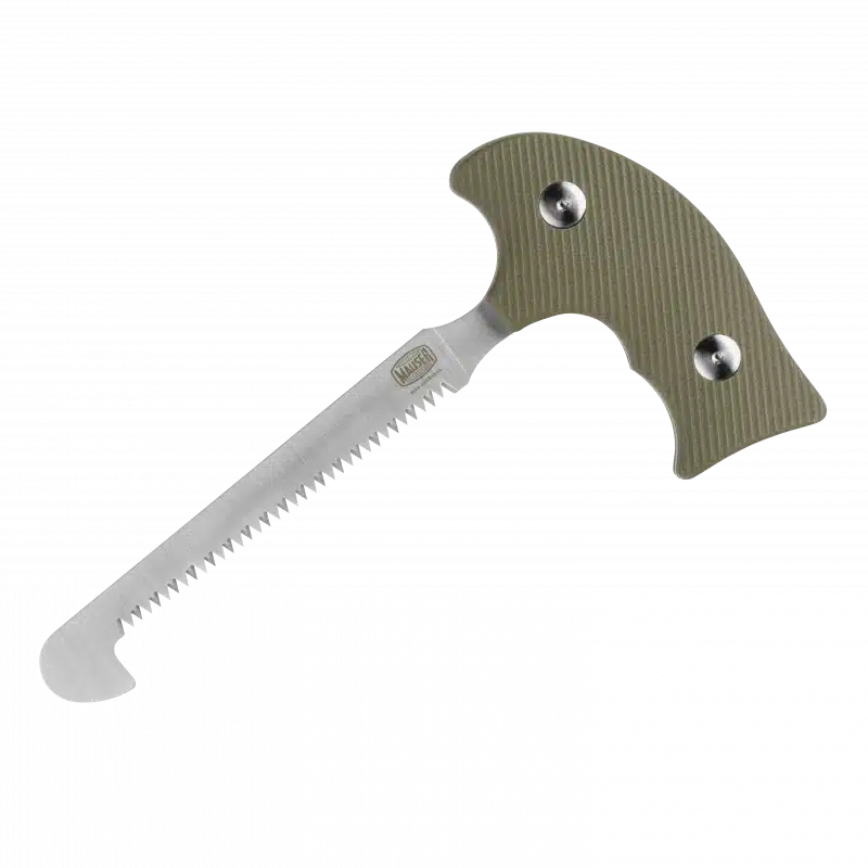 Solid rivende sav til at bryde brysthulen op på klovvildt. Ergonomisk håndtag, gennemgående sav lavet af 420 rustfrit stål med krog, som tillader præcise og lige snit (inkl. Cordura skede med bælteløkke.)